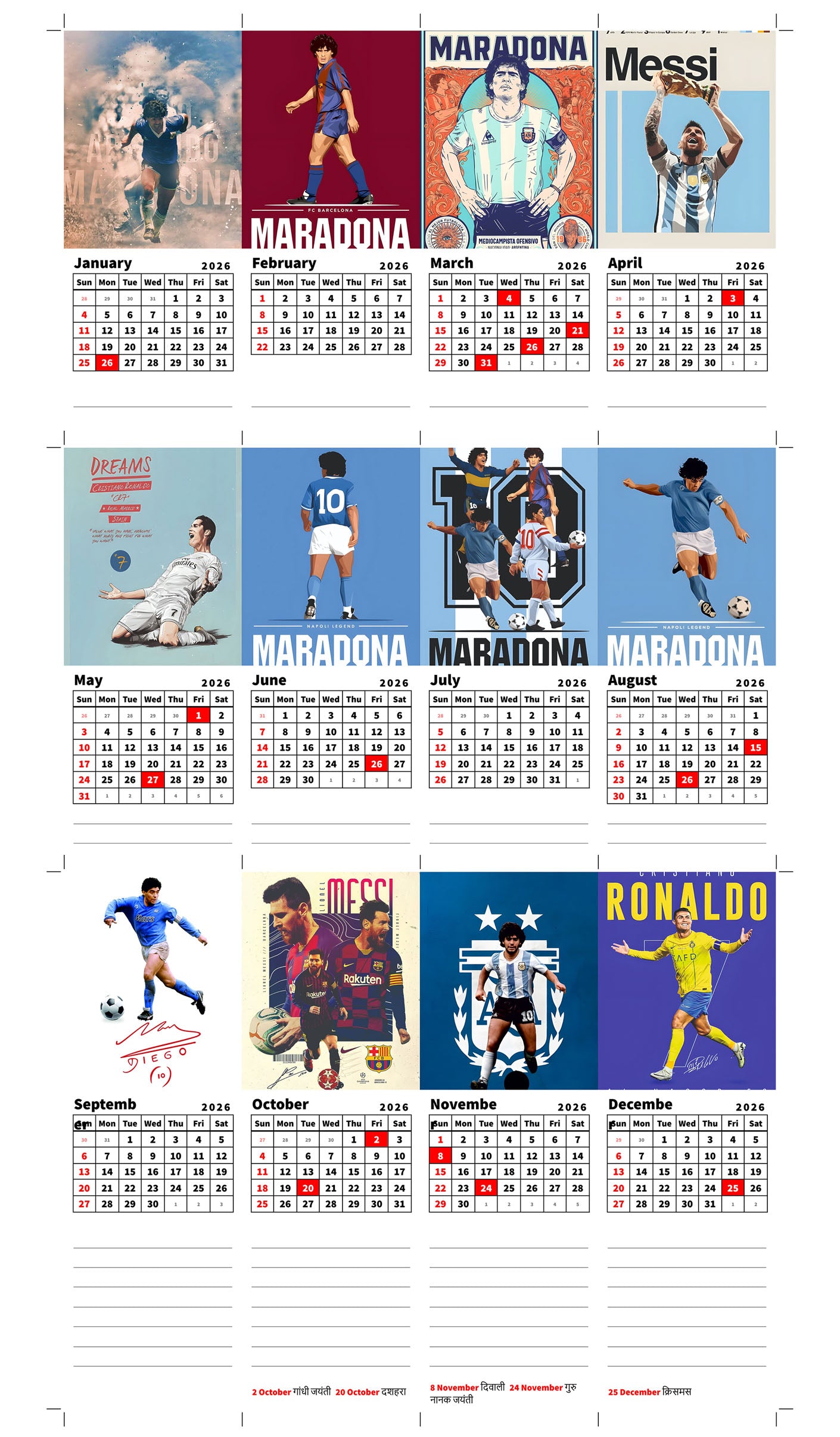 Important Holidays Marked ā Helps you plan ahead easily
